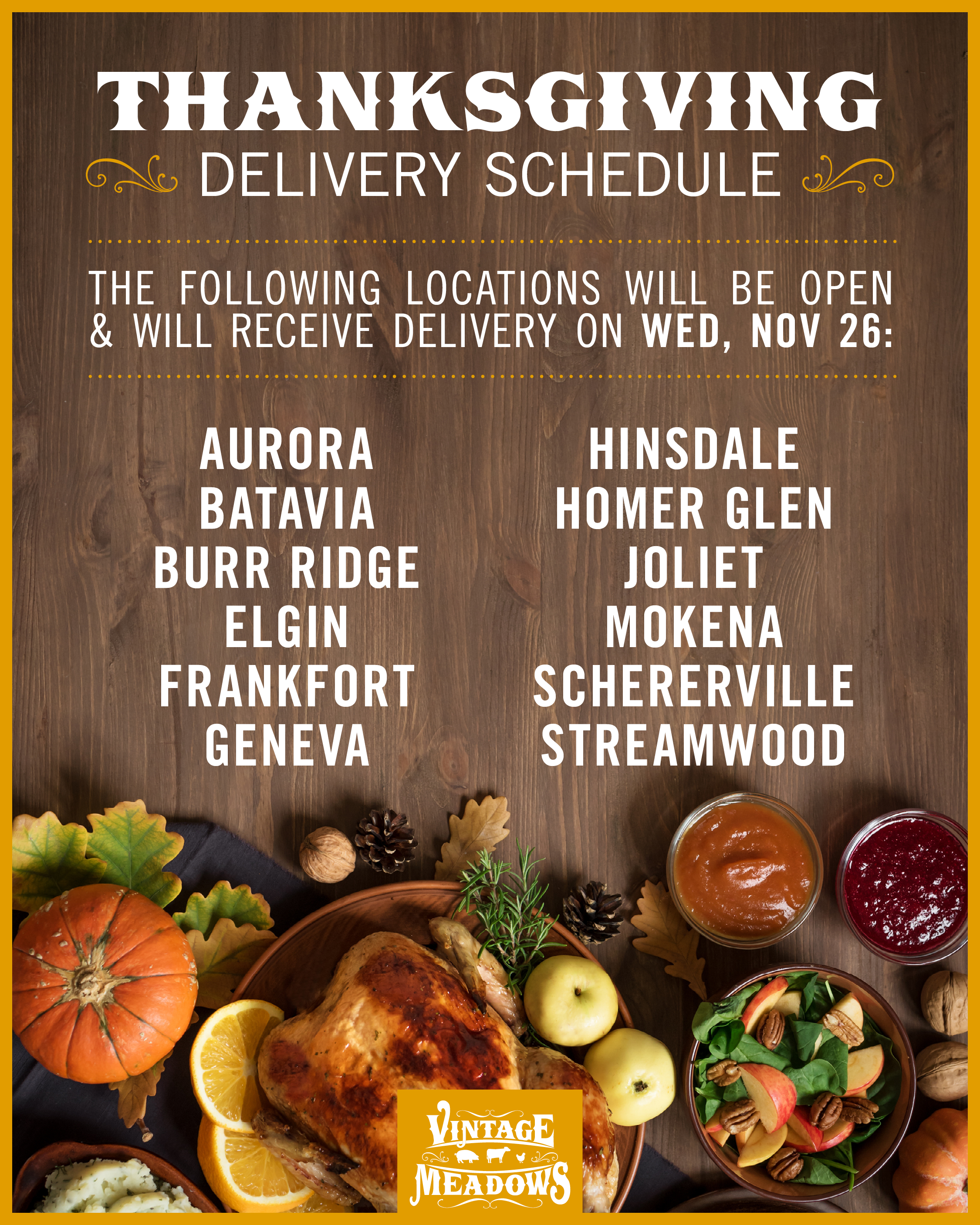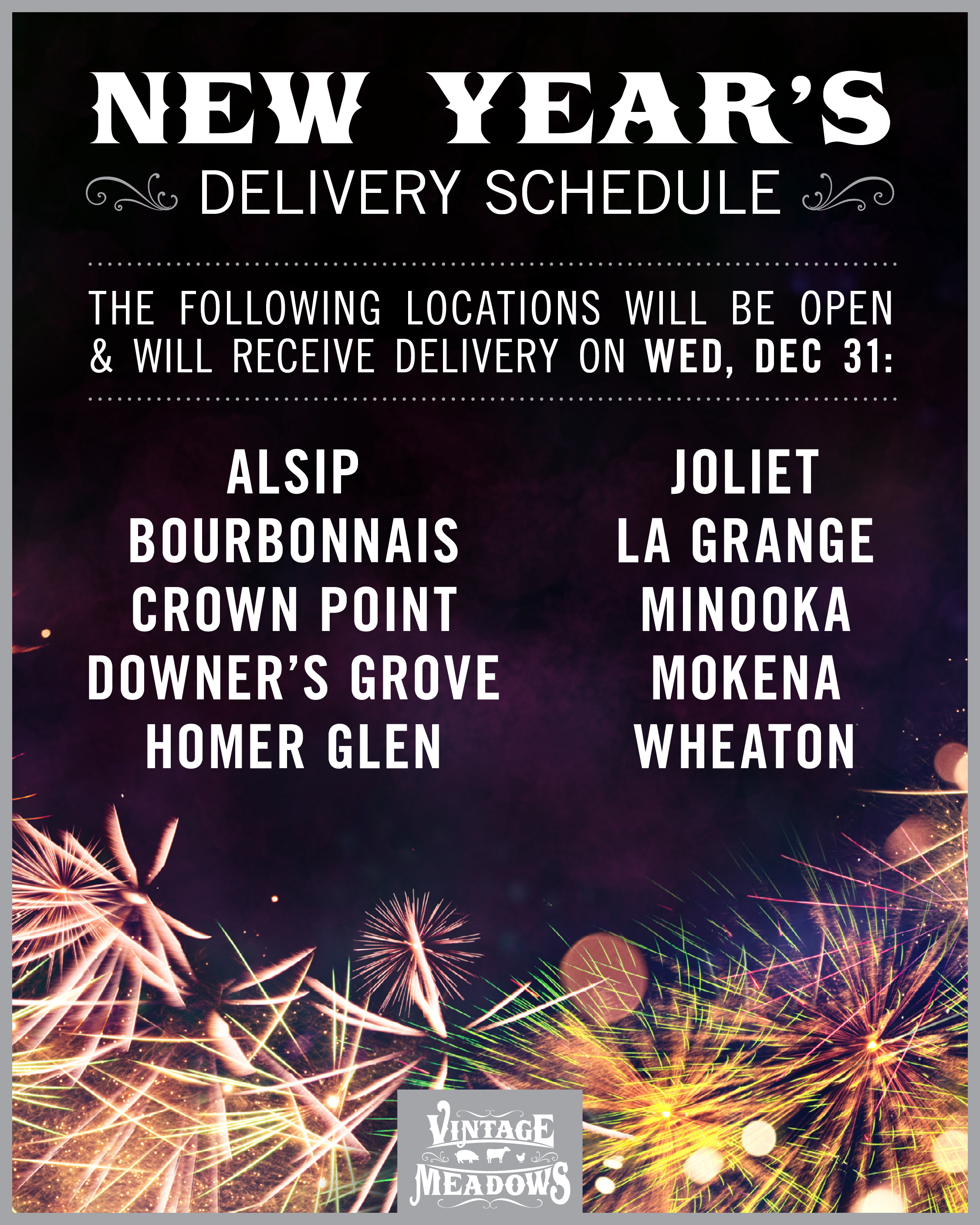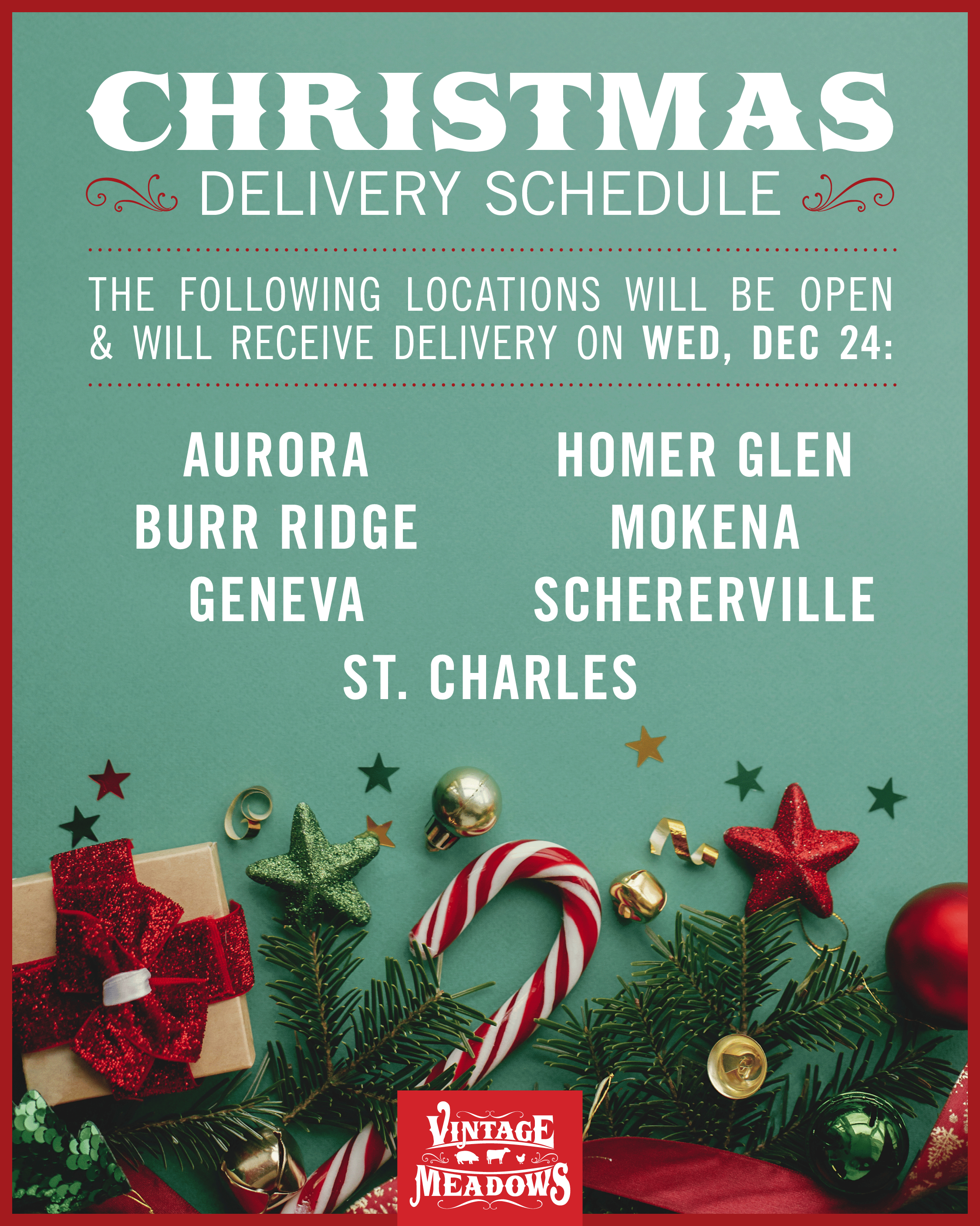 Plan ahead for our modified delivery schedules during the holidays. If your location isn’t listed below, we recommend stocking up on frozen milk, extra bread, or even a case of eggs to ensure you don’t run out.
